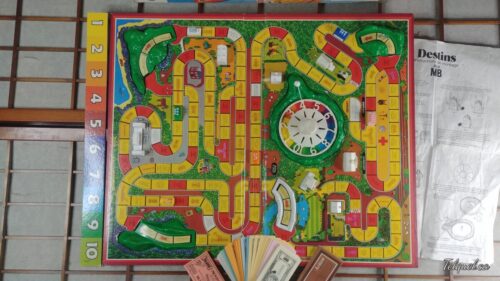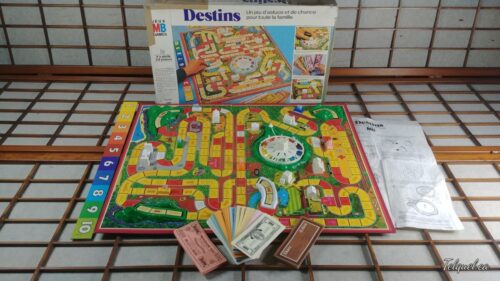 Jeu de Société Vintage «Destins» de Milton Bradley. (The Game of Life) Version Française pour 2 à 8 Joueurs (8+) Made in Canada / Fabriqué au Canada par Milton Bradley inc. 1970 / Model: C4001 / Grandeur de la Boite: 20″ x 12″ x 2.25″ / Poids: 1.165Kg. Jeu Complet en Excellente Condition, la Boite Montre du Vécu. Voir Photos pour Plus de Détails et Condition de l’article, Mise de Coté et Livraison Disponible avec Poste Canada (a vos Frais) Payable à l’avance par Virement Interac. Ramassage/Pick-Up en Argent Comptant Seulement/Cash Only. Situé au Quartier Dix30 a Brossard (J4Z 3T7) Pour Toutes Questions Contactez moi au 514.983.6464 Claude.